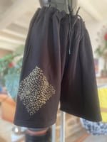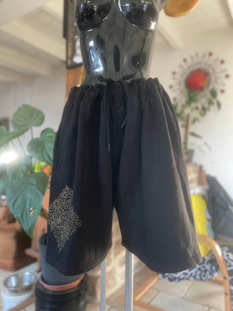 Bermuda noir / Taille 4XL / Motifs rouge et or / Flocage orange flash / Lacet pour la taille
